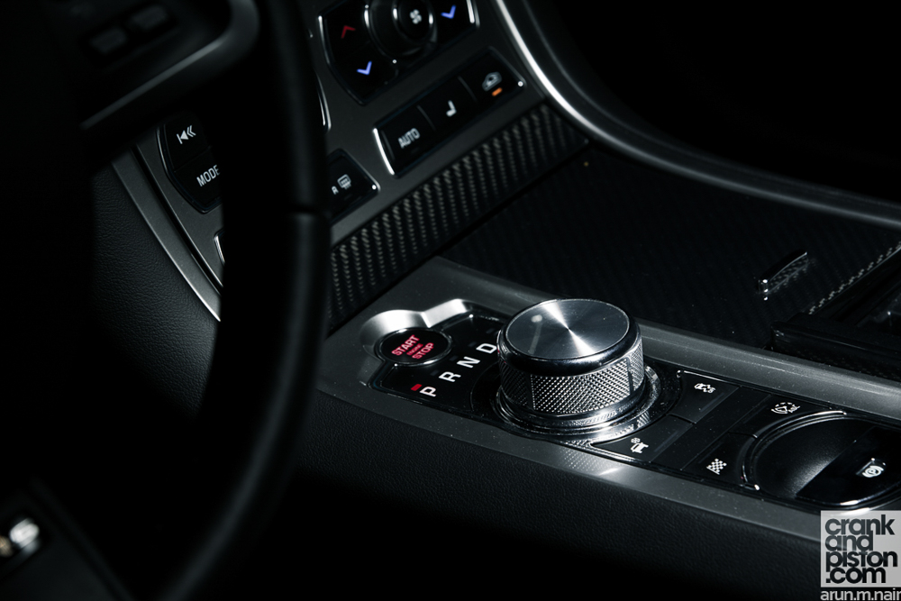 The handling though is just part of the showcase, the other being that superb lump of power under the bonnet. Hit the loud pedal with vim and the front just leaps away in acceptance, sharp acceleration not letting up even as we approach the redline. Short sharp gear changes via the eight-speed ‘Quickshift’ automatic box allow me to keep up momentum on the straights (even if I can’t really see where I’m going) whilst those enormous brake discs allow me to wrestle the Big Cat back under some semblance of control into the corners. It’s all very composed and yet, at the same time, lethal. Even on the creepy Jebel Jais road in the pitch black, it’s an absolute hoot, albeit a heart-pumper.
