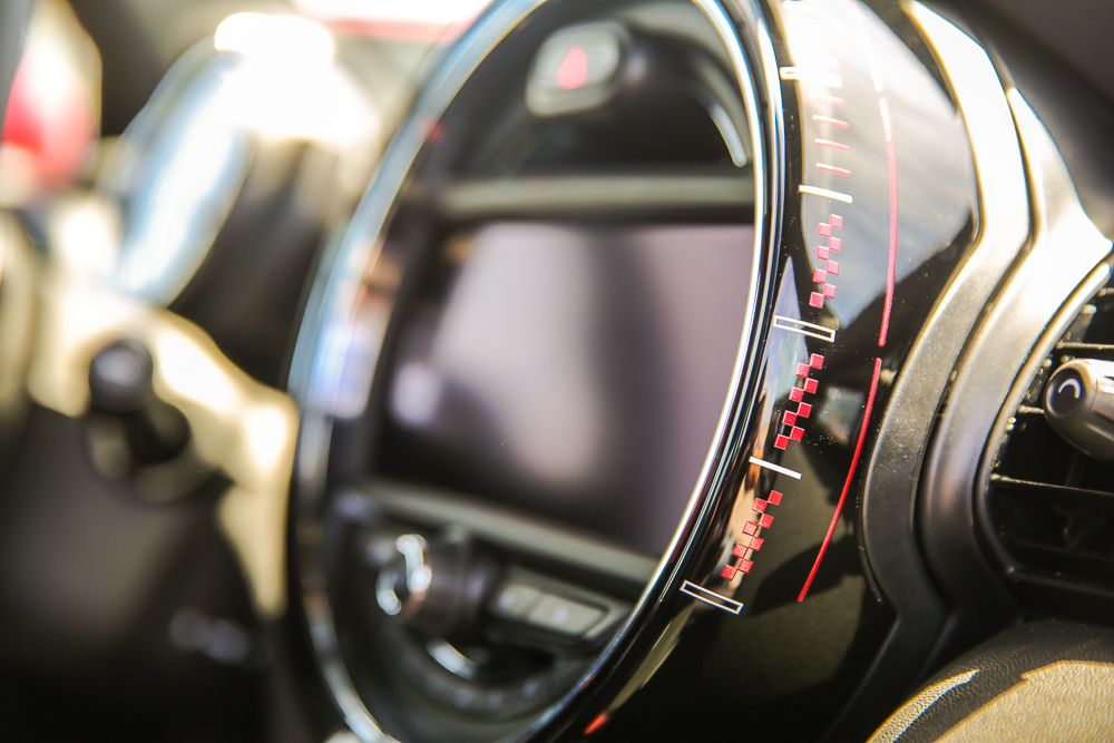 As things get serious, I switch from Normal to Sport driving mode. Immediately, there’s a noticeable difference in heft from lock-to-lock over the slightly woolly Normal mode. It’s making me work harder but the feedback is much better, the grip from those 17in front wheels keeping understeer at arms length. It’s this point-and-shoot mannerism of the JCW that is making my run at Mallorca, though at times frustrating, so enjoyable. Nauseating as the ‘go-kart’ cliché might be, it does ring true.