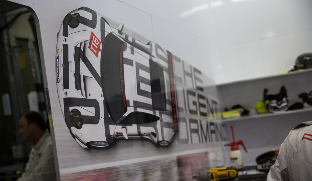There’s a brief shot of the main grandstand, now swathed as it is in plastic raincoats and umbrellas. Out of the gloom though raises a Porsche flag, emblem proudly flying. The flags will ultimately not stop flying until well after the race has finished, a testament to the enthusiasm and passion for the returning marque. A sentiment that, once the on-track action has calmed down, reminds Hartmut of the process of raising a team from the ground-up.