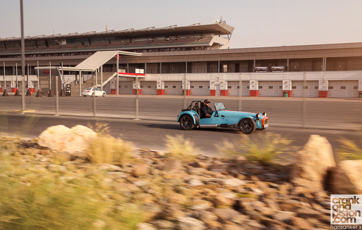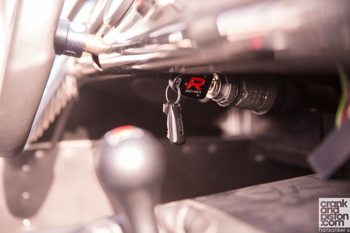 As it turns out, not particularly well. Wallet, keys and iPhone are discarded just to get into the figure hugging race seats, whilst adjusting and clicking the four-point race harness into place is a process as maddening as it is knuckle-scuffing. Admittedly the asphalt-rubbing seating position is bang on for that intrinsic Caterham character, even if this does leave my left arm with little room to manoeuvre next to the snug confines of the bulkhead: most of the mid-corner heave will come from my right arm throughout the day.